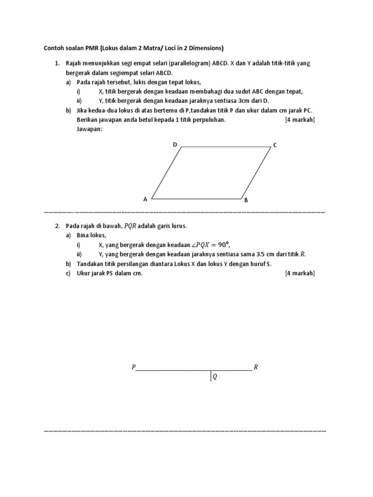 Contoh Soalan Matematik Pmr